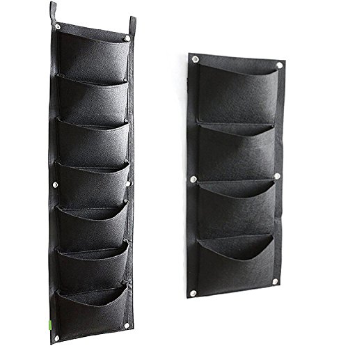 Ruier-tong 7ポケット フェルトプランター ウォールプランター 壁掛け式 植え袋 植栽バッグ 園芸 ガーデン用 植物 花 野菜栽培 室内外可 ブラック 102*30cm お買い得