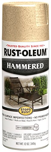 Durable, corrosion-resistant. Apply directly over rust. Offers a rich, distinctive hammered look. Features a comfort tip with a wider finger pad to reduce fatigue caused by continuous spraying. Stops rust, 12 oz, hammered oatmeal, rust spray paint, adheres directly to rust & instantly hides flaws & imperfections with its modern, glossy, hammered finish, perfect for old wheelbarrows, wheel rims, patio furniture, railings & more, interior/exterior, durable, corrosion resistant.