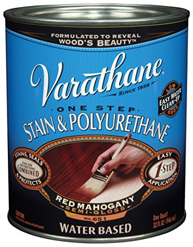 Soap and water clean-up. "RUST-OLEUM " STAIN RED MAHOGANY QUART WOOD FINISH One step stain and polyurethane adds. Rich color and smooth protective finish. Apply to wood furniture trim cabinets and doors. Finish:red mahogany. Interior : water based.