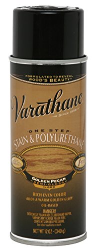 Can be added to pre-finished furniture to change the color without stripping or sanding off existing finish. Rust-Oleum 243863 12-Ounce One Step Oil Based Stain and Polyurethane Spray, Golden Pecan Rust-Oleum 243863 12-Ounce One Step Oil Based Stain and Polyurethane Spray, Golden Pecan Features: Stain and polyurethane spray Ultimate convenience as it combines both stain and polyurethane into a one step product Ideal for covering large surfaces quickly Same quality formula as the oil based brush version Eliminates application issues such as brush marks Ensures a smooth even finish Can be added to prefinished furniture to change the color without stripping or sanding off existing finish Oil based Golden Pecan 12-Ounce.