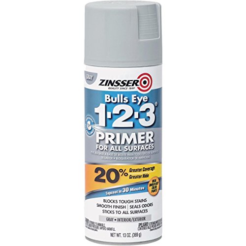 Gray color of primer works great under vibrant, vivid colors saving time and money by improving hide and coverage of deep topcoats. Bulls-Eye 1-2-3 Spray Gray Primer is an all purpose, high performance, oil-based primer for interior and exterior residential, commercial and industrial applications. Use under rich, dark topcoat colors to improve hide, coverage and get the right color in less coats. Dried film is mildew resistant.