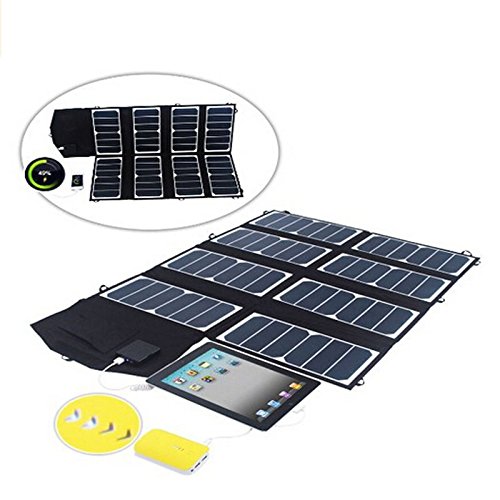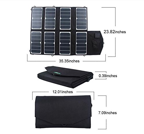 SAILFLO 52Wノートパソコンタブレットノートブックおよびその他の18V電子機器用DC 18VおよびUSB 5V出力充電器付きポータブルサンパワー折りたたみソーラー充電器パネル (52W Black)