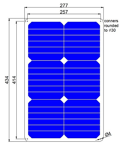 特徴 •超柔軟性(最大60%)、超軽量 •デッキシューズで歩くことができるコーティングされた表面。 •高効率太陽電池「バックコンタクト」セル •湾曲した固体表面に便利に配置できます •どこにでも固定するための留め具 •低温 - 低温係数により、高温状態でより高い出力が得られます。 仕様 •最大電力Pmax:18W •最大消費電流(Ipm):0.9A •最大電源電圧(Vpm):19.4V •短絡電流(Isc):1A •開回路電圧(Voc):23.7V •C-Eff:20.5% サイズ:435mm x 280mm x 3mm