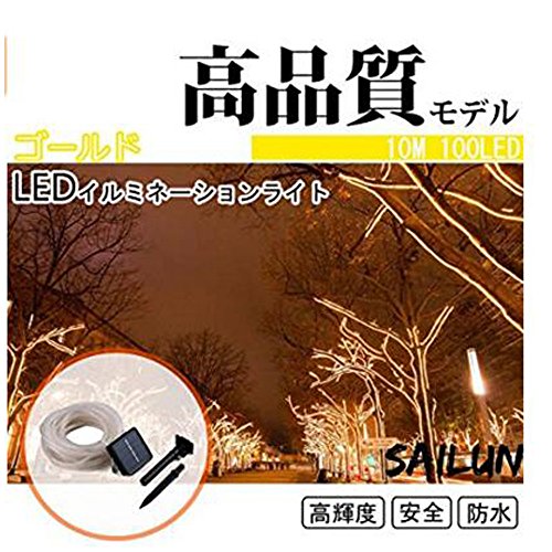 SAILUN LED イルミネーション 2芯 丸型 ロープ ライト 100LED (10 m) 防水 対応 屋外 屋内 電飾 飾り付け クリスマス 結婚式 (ゴールド)