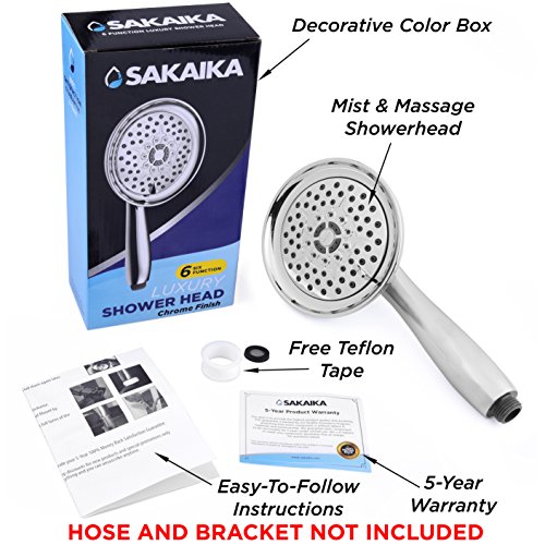 sakaika sh-ls2 5 "高圧力多機能ハンドシャワーW /マッサージ – Best調整可能多機能ハンドヘルドシャワーヘッドWand – クローム, 2.5 GPMフローレート( Detachable Hand Heldヘッドのみ)