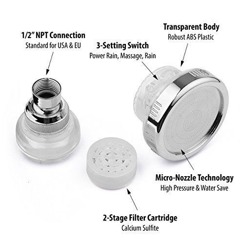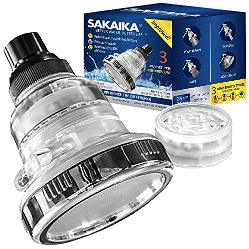 Filtered Shower Head, High Output Chlorine Filter & Hard Water Softener- Prevents Dry Skin & Hair, Removes Bacteria & Purifies Water- Includes 3 Spray Settings (Sakaika SH-B388) [並行輸入品]