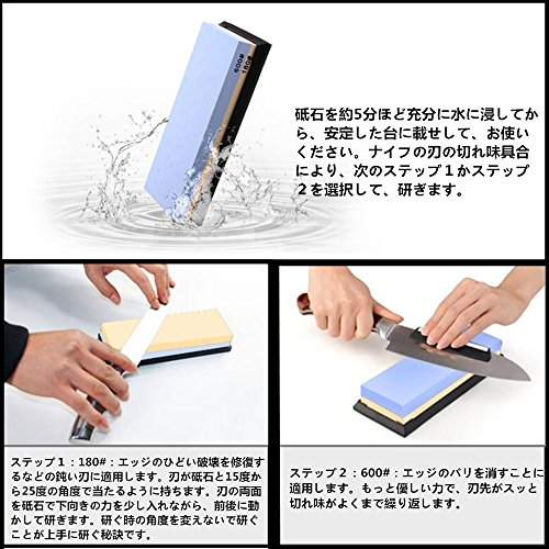ステップ1:荒砥:エッジのひどい破壊を修復するなどの鈍い刃に適用します。刃が砥石と10度から30度の角度で当たるように持ちます。刃の両面を砥石で下向きの力を少し入れながら、前後に動かして研ぎます。研ぐ時の角度を変えないで研ぐことが上手に研ぐ秘訣です。