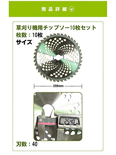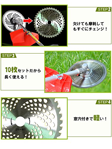 チップソー 替刃10枚セット 草刈り機用交換チップ 255mm×40T 穴径25.4mm 簡単取り付け [並行輸入品]