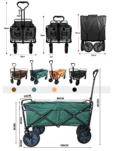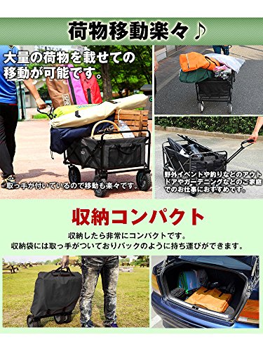 キャリーワゴン 折り畳み式 ブラック 全6色 耐荷重80kg 前輪360度回転 収納袋付き [並行輸入品]