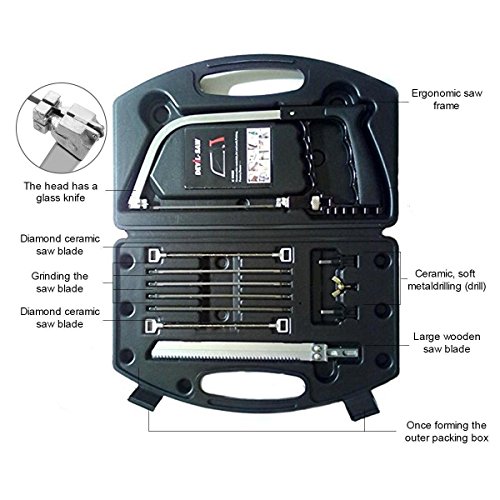 - 多機能:この商品ひとつで、木材・ガラス瓶・プラスチック・軟鉄・アルミ・ゴム・合板(集成材)など、一般家庭にありふれた様々なモノをカットできる万能セットです。