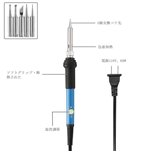 SEALODY はんだごて はんだごてセット(半田ごて)60W 110V 電子工作用に ダイヤル式 温度調節可能(200-450℃) 収納ケース付き 溶接工具 交換コテ先付き【DIY作業工具】家庭用