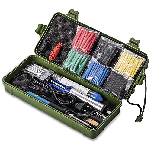 - 【アクセサリーが十分に揃っている】このはんだこてセットは、10種付属品が付き(はんだごて本体、はんだ吸い取り器、コテ台、交换用こて*5、AWG電子ワイヤー*2、ミニワイヤーストリッパー、はんだ、熱収縮チューブ*6バック、静電気防止ピン、収納ケース)。電子工作に必要な付属品が全部揃いております!収納もキレイにできます。持ち運びとか収納とか便利です。