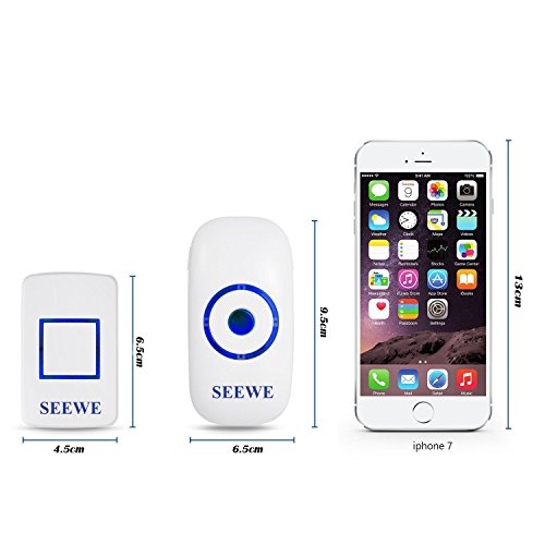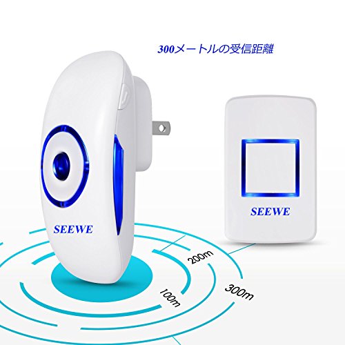 SEEWE ワイヤレスチャイム ドアベル 防水防塵チャイム 玄関チャイム チャイムセンサー 呼び鈴 配線工事不要チャイムセット 家庭用 居酒屋用 介護用 店舗用 レストラン用 LEDライトが光る (送信機1個+受信機1個) …