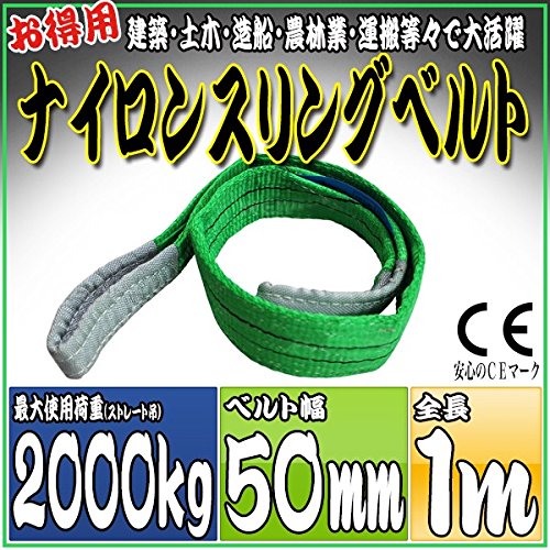 - 全長:1m ベルト幅:50mm 最大使用荷重(能力) ・ストレート吊り:2000kg ・チョーク吊り:1600kg ・バスケット吊り:4000kg 材質:ポリエステル100% 両端アイ型 CE規格品