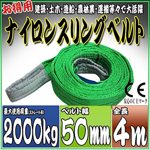 - 全長:4m ベルト幅:50mm 最大使用荷重(能力) ・ストレート吊り:2000kg ・チョーク吊り:1600kg ・バスケット吊り:4000kg 材質:ポリエステル100% 両端アイ型 CE規格品