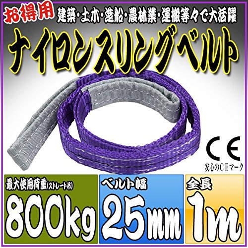 - 全長:1m ベルト幅:25mm 最大使用荷重(能力) ・ストレート吊り:800kg ・チョーク吊り:640kg ・バスケット吊り:1600kg 材質:ポリエステル100% 両端アイ型 CE規格品