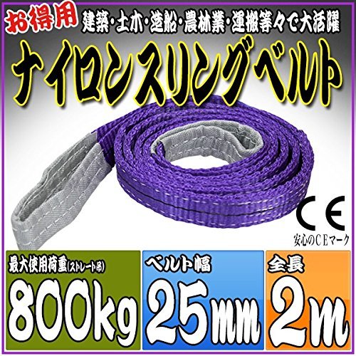 - 全長:2m ベルト幅:25mm 最大使用荷重(能力) ・ストレート吊り:800kg ・チョーク吊り:640kg ・バスケット吊り:1600kg 材質:ポリエステル100% 両端アイ型 CE規格品