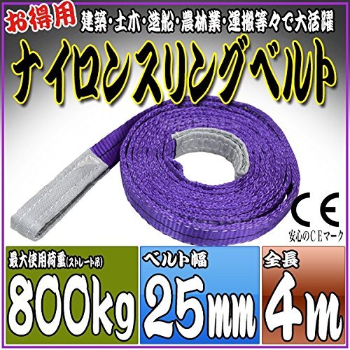 - 全長:4m ベルト幅:25mm 最大使用荷重(能力) ・ストレート吊り:800kg ・チョーク吊り:640kg ・バスケット吊り:1600kg 材質:ポリエステル100% 両端アイ型 CE規格品
