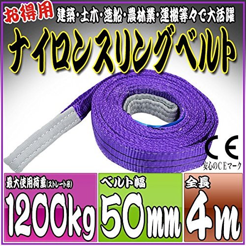 - 全長:4m ベルト幅:50mm 最大使用荷重(能力) ・ストレート吊り:1200kg ・チョーク吊り:960kg ・バスケット吊り:2400kg 材質:ポリエステル100% 両端アイ型 CE規格品
