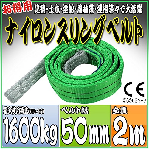 - 全長:2m ベルト幅:50mm 最大使用荷重(能力) ・ストレート吊り:1600kg ・チョーク吊り:1280kg ・バスケット吊り:3200kg 材質:ポリエステル100% 両端アイ型 CE規格品