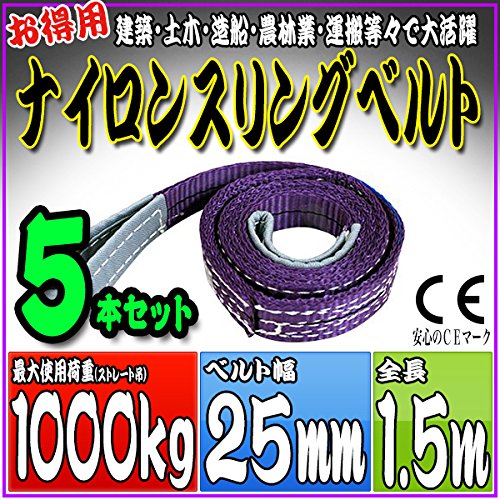 SEIKOH スリングベルト 5本セット 1.5m 幅25mm 使用荷重1000kg ナイロンスリング 吊上げ 牽引
