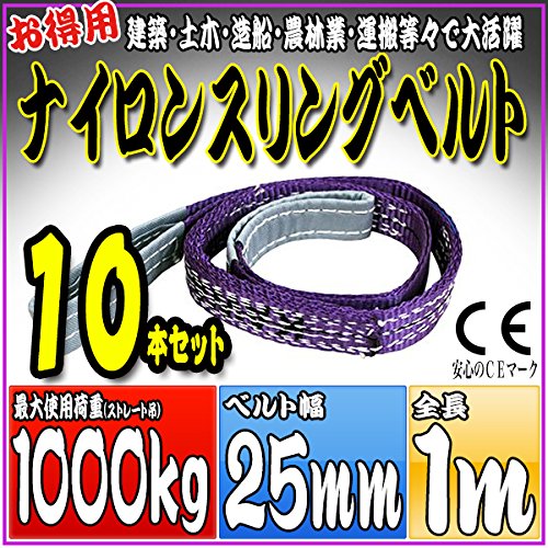 SEIKOH スリングベルト 10本セット 1m 幅25mm 使用荷重1000kg ナイロンスリング 吊上げ 牽引