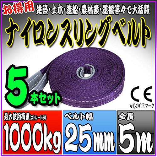 SEIKOH スリングベルト 5本セット 5m 幅25mm 使用荷重1000kg ナイロンスリング 吊上げ 牽引