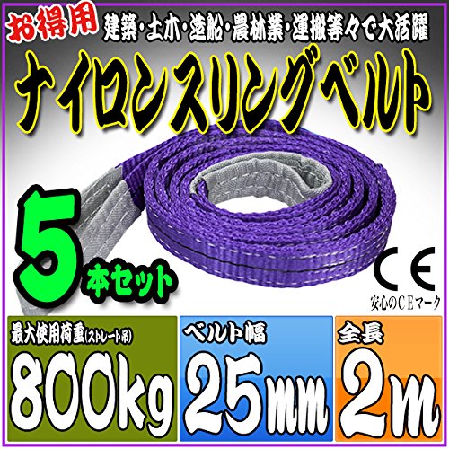 SEIKOH スリングベルト 5本セット 2m 幅25mm 使用荷重800kg ナイロンスリング 吊上げ 牽引