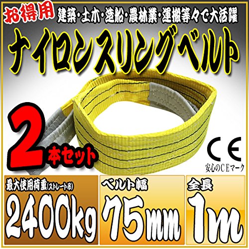 SEIKOH スリングベルト 2本セット 1m 幅75mm 使用荷重2400kg ナイロンスリング