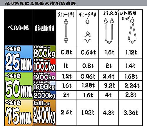 - 全長:5m ベルト幅:75mm 最大使用荷重(能力) ・ストレート吊り:2400kg ・チョーク吊り:1920kg ・バスケット吊り:4800kg 材質:ポリエステル100% 両端アイ型 CE規格品