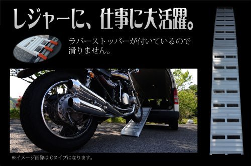 - ATV四輪バギー・ダンプやトラック等にユンボやローラー・耕運機・バイクなどを積込みする為の折りたたみ式アルミラダーです。 表面に梨地処理施しており、通常タイプより滑りにくい構造!