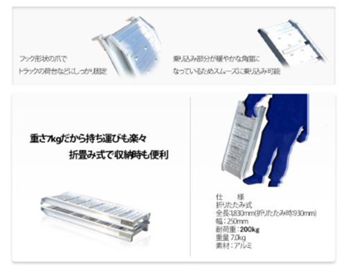 - バイクから耕運機まで積み込める、軽くて丈夫なアルミブリッジです!