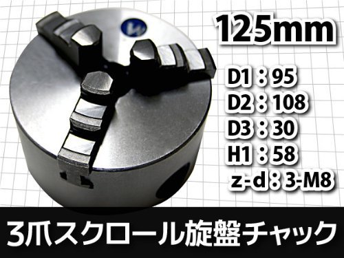 - チャック径φ125mmの三爪スクロールチャックです。