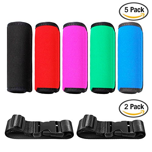 5個パック ハンドルラップ スーツケース 用 ラップグリップ + 二つ 荷物まとめ ストラップ SENHAI 荷物ハンドルラップ 荷物運ぶパッド 楽に運ぶ - ブラック, ピンク, グリーン, ブルー