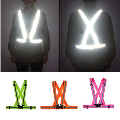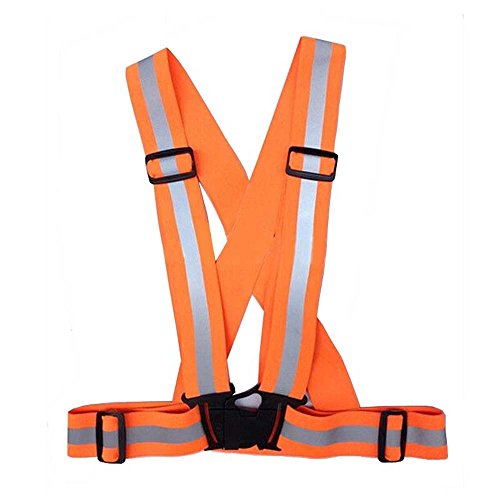 反射ベスト 安全ベスト 蛍光オレンジ 反射できる高弾力 調節可能 反射ストラップ (オレンジ)