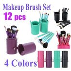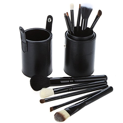 NN.HRD メイクブラシ セット 便利で丈夫な レザーケース 柔らか やさしい肌触り ( レザー筒ケース 12set ブラック )