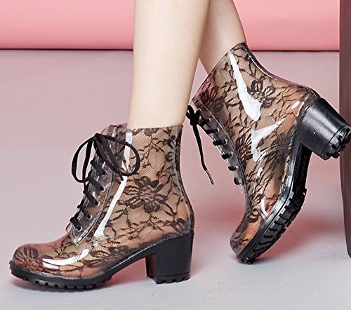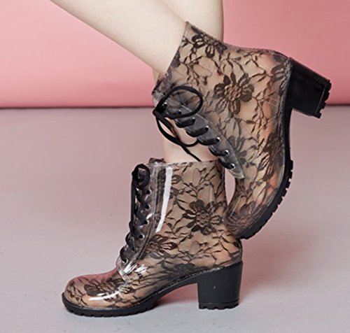 WW.HRD ガーデン シューズ 花柄 レース スケルトン レディース レイン ブーツ 黒 ( 23.0cm )