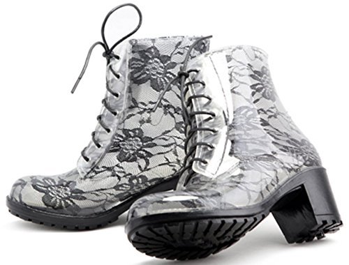 WW.HRD ガーデン シューズ 花柄 レース スケルトン レディース レイン ブーツ 黒 ( 24.5cm )