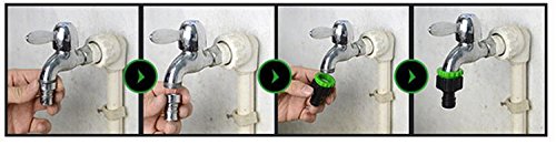 - 水圧が高くなるため、コネクター部分のロックを確実にして、水道の蛇口側も、しっかりと固定してください。使用後は、ホース内の水を放水しきってから、蛇口のコネクターを外してください。
