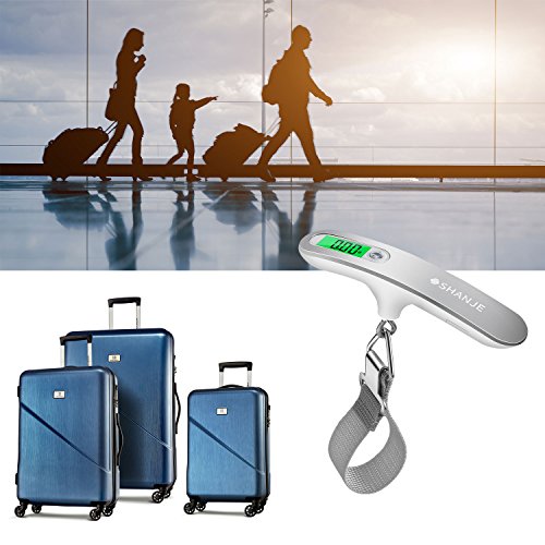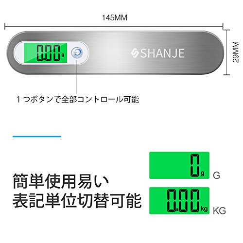 旅行 電子はかり 携帯式デジタル スケール 最大50kgまで量れる 風袋引き機能 LEDディスプレイ LCC用 ラゲッジチェッカー 小型軽量 ステンレス仕上げ トラベル/アウトドア/つりホームに最適 日本語説明書 SHANJE