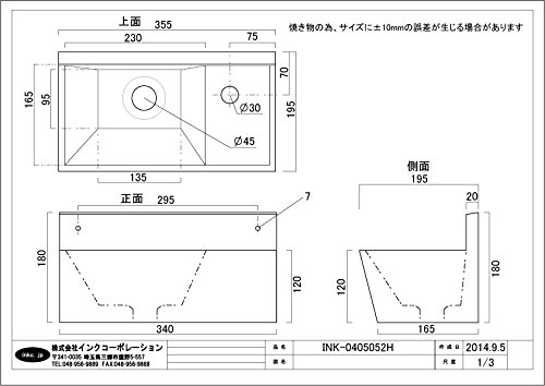 ・陶器製品寸法には公差がございます。 ・水栓金具は別売りです。 ・プッシュ式クロム排水栓1個が付属します。 【 サイズ:W355*D195*H180 】 【素材:陶器】 【重量:約6kg】 【水量:約2.2L】