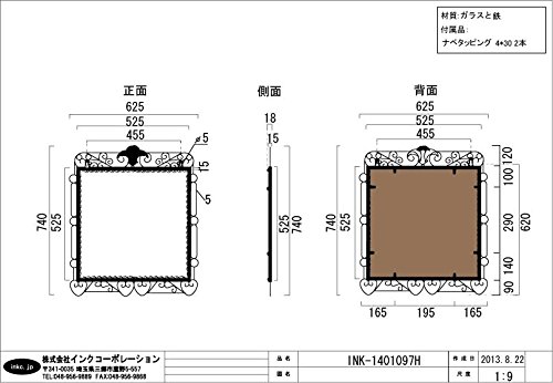 ミラー 鏡 壁掛け アイアン フレーム [幅62.5×高74cm] INK-1401097H