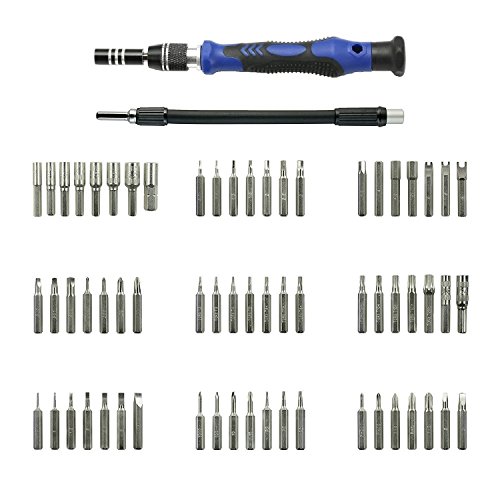 - 【作業性抜群】豊富な64種類のビットは、あらゆるネジに対応します、時計、眼鏡、精密機器の修理・組立など、微細なネジの着作業に適用です。 携帯電話、コンピュータ、ハードドライブ、プリンタ、シェーバー、モデル、自転車などの修理がこれ1本で可能です。