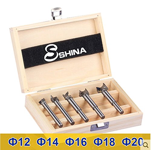 SHINA 木工用ボアビット5本セット 木工ドリル 穴あけ ドリルビットセット タングステンカーバイド 面取り 彫刻 プロフェッショナルレベル (KKQ-P12-20)
