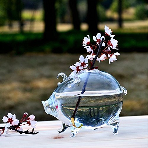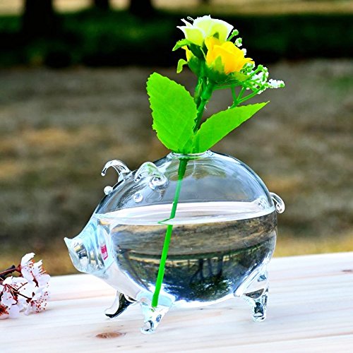 SHINA 1個 デスクトップ 小さな豚 型 ガラス 水栽培ポット 観葉植物 水耕栽培植物 ホームデコレーション