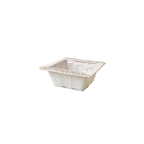 定番バスケット PEカゴ 角タイプ フチ付き鉢カバー 白 2-3001