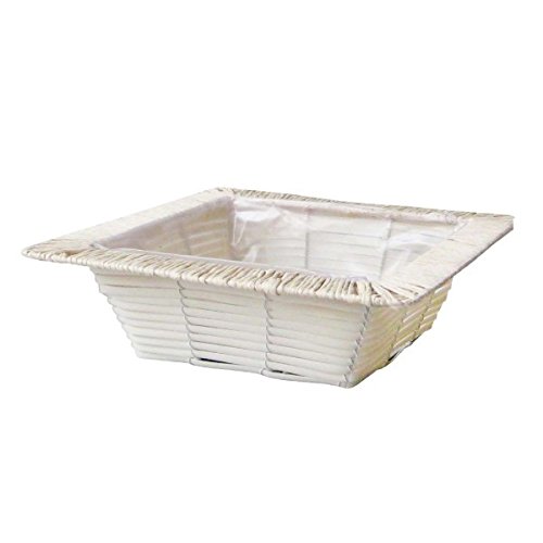 定番バスケット PEカゴ 角タイプ フチ付き鉢カバー 白 2-3005