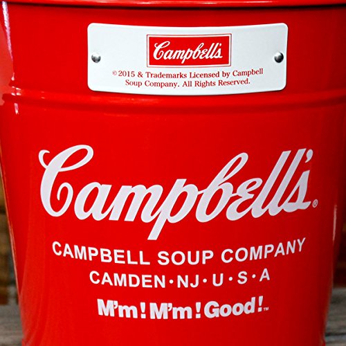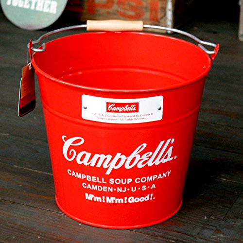 スチール製バケツにキャンベルスープのロゴプリントがデザインされたバケツです♪