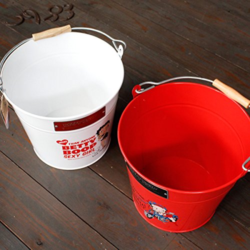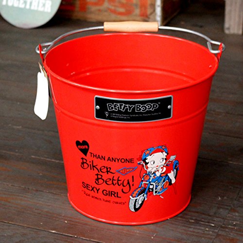 ベティちゃん スチール製バケツ(レッド:バイカー柄) /Betty Boop・ベティーブープ/ガーデニング/アメリカン雑貨/