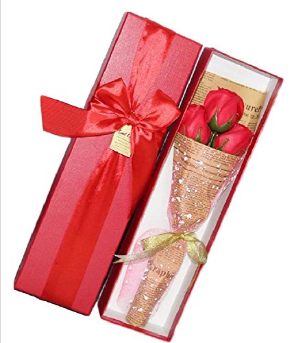 ギフト 感謝 を 花束 に ソープフラワー お祝いに プリザーブドフラワー 風 メッセージカード の セット 父の日 誕生日 赤 3本